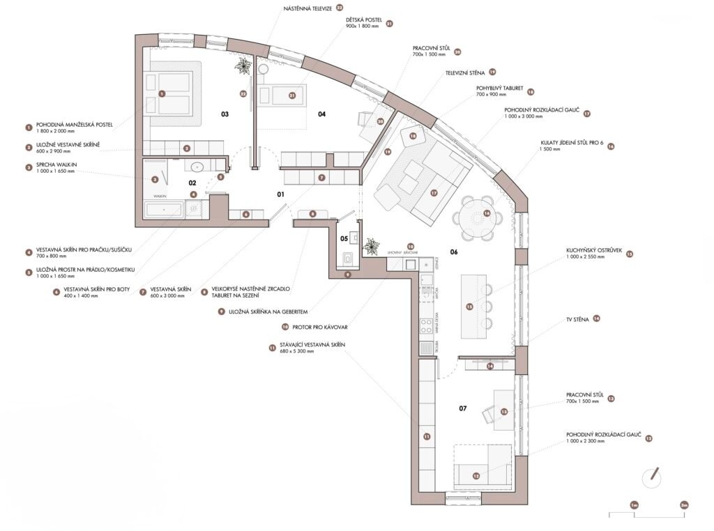 Celý návrh interiéru vychází z jednoduché, ale silné myšlenky. Propojit byt tak, aby každý jeho kout přirozeně navazoval na další. Aby všechno ladilo nejen na pohled, ale i pocitově. Chtěli jsme vytvořit místo, kde se dobře žije. Místo, které vás obejme hned, jak do něj vstoupíte.